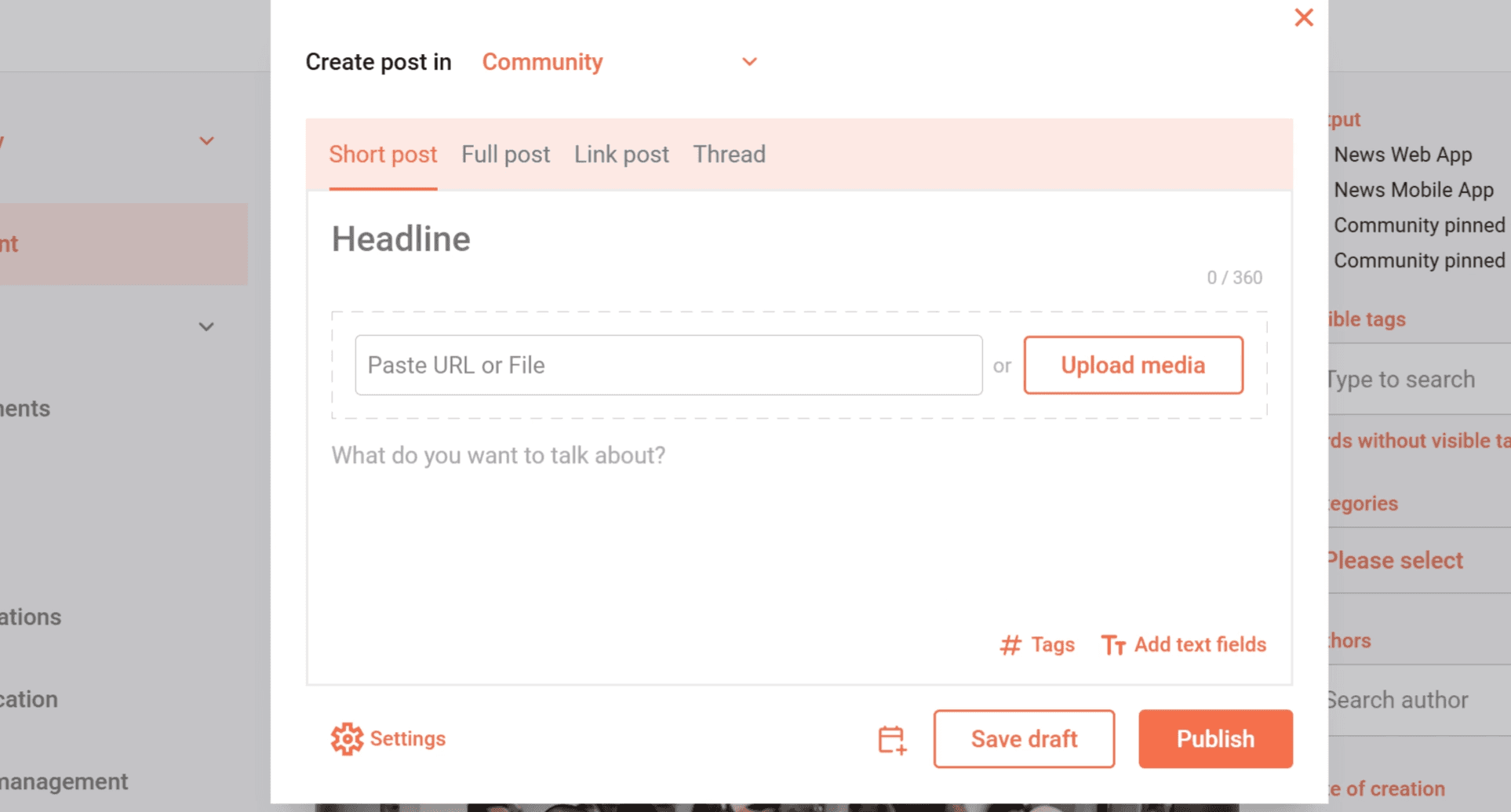 • Short post: A text post similar to a social media post