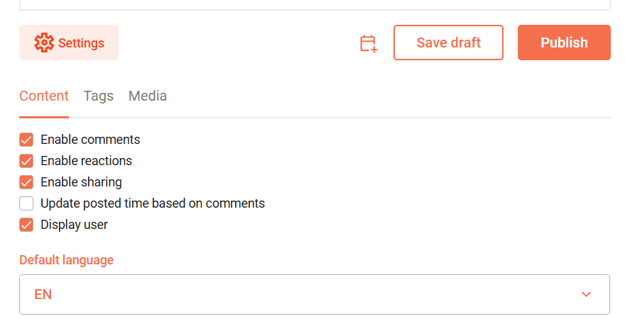 Step 6: Under Settings, you can specify whether comments or emoji reactions are allowed on the post.
